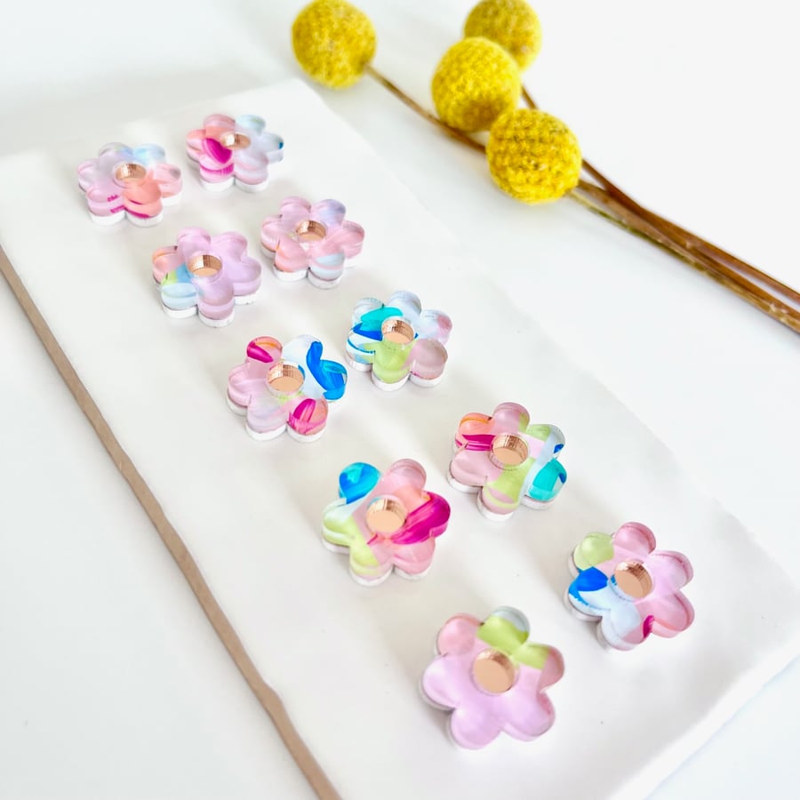 Kaleidoscope (hand painted) Mini Daisy Studs