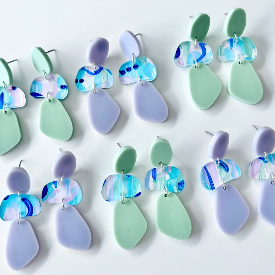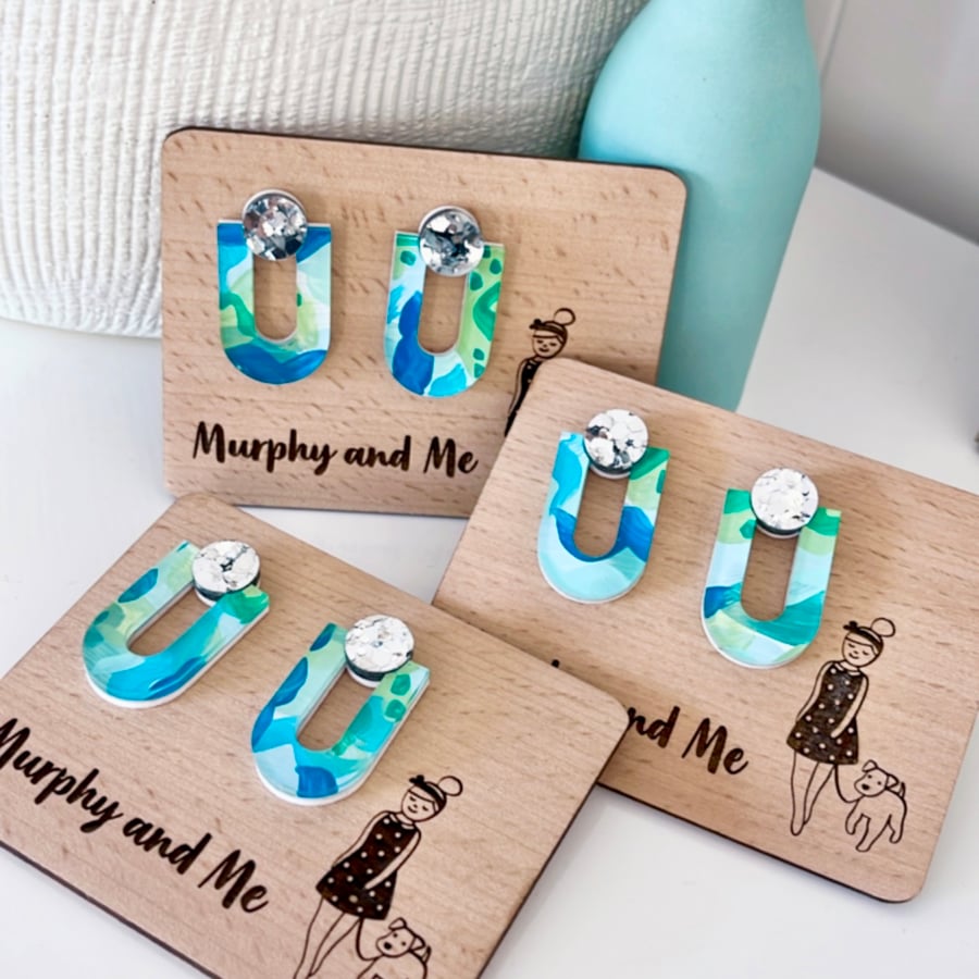 Blue and Green (hand painted) Statement Studs