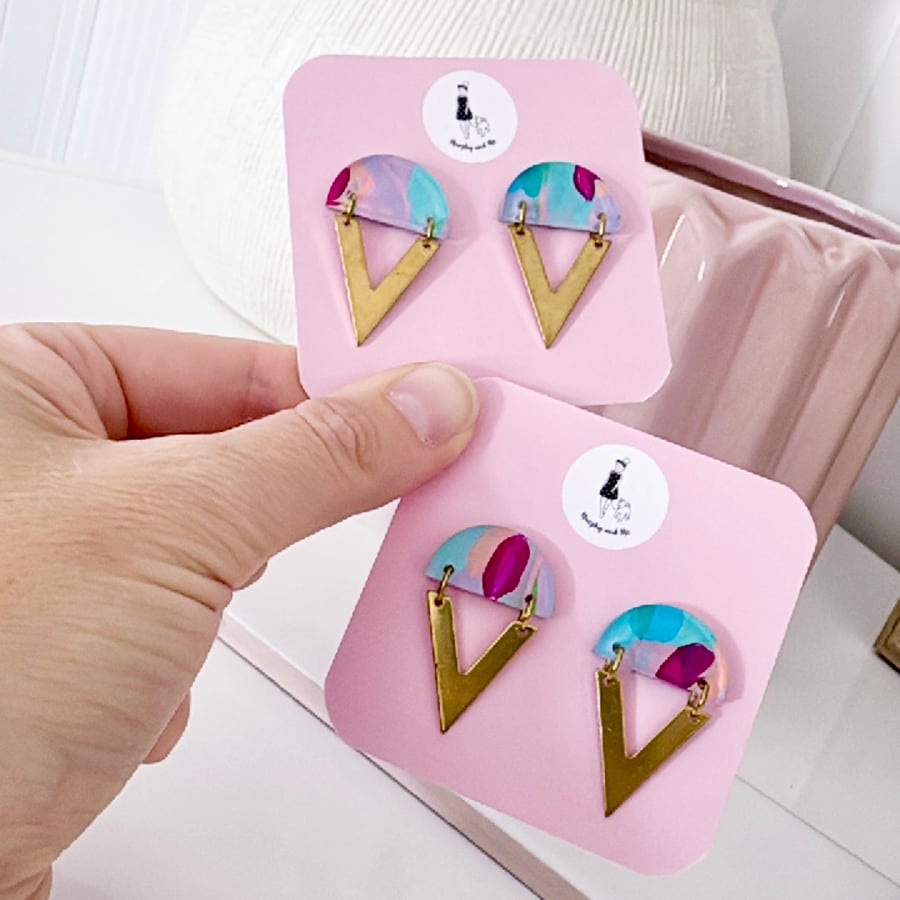 SALE ~ 'Summer Floral' Hand Painted Arch Huggie Dangles