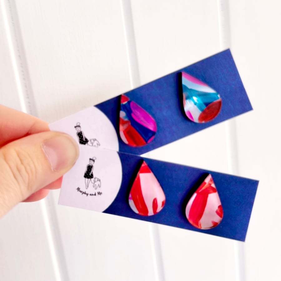 SALE ~ Tear Drop 'Night Garden' Hand Painted Studs