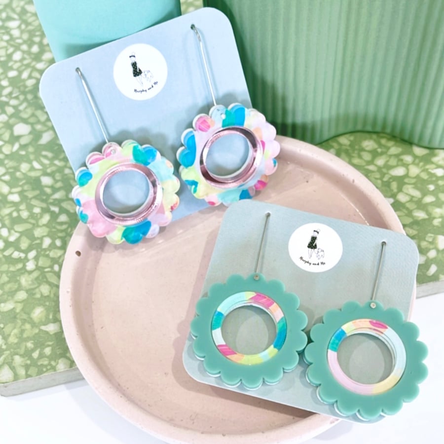 SALE ~ Kaleidoscope (hand painted) Flower-drop Dangles