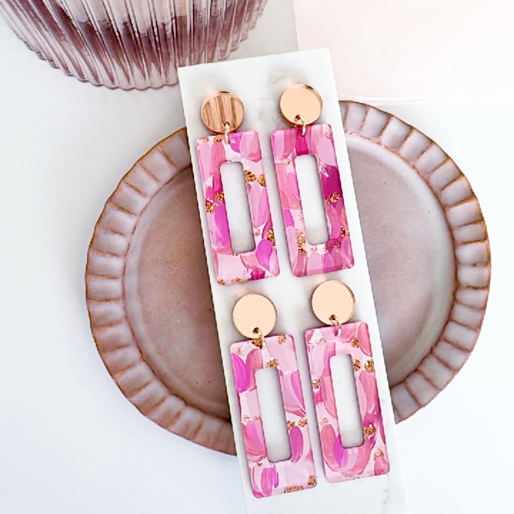 SALE ~ 'Pink Champagne' Painted Rectangle Dangles